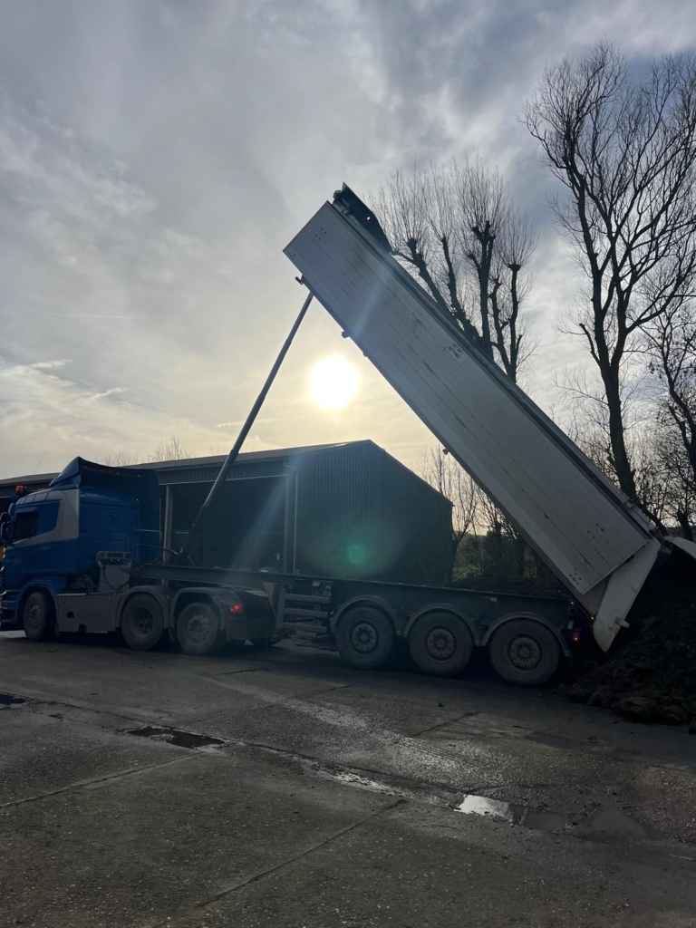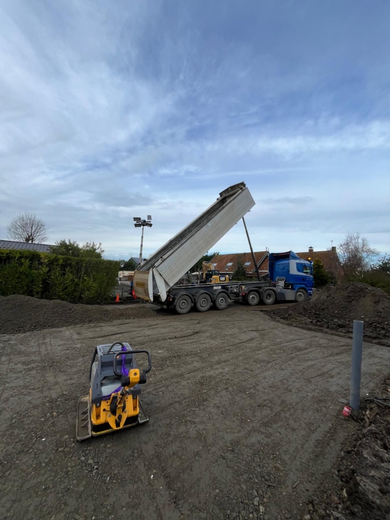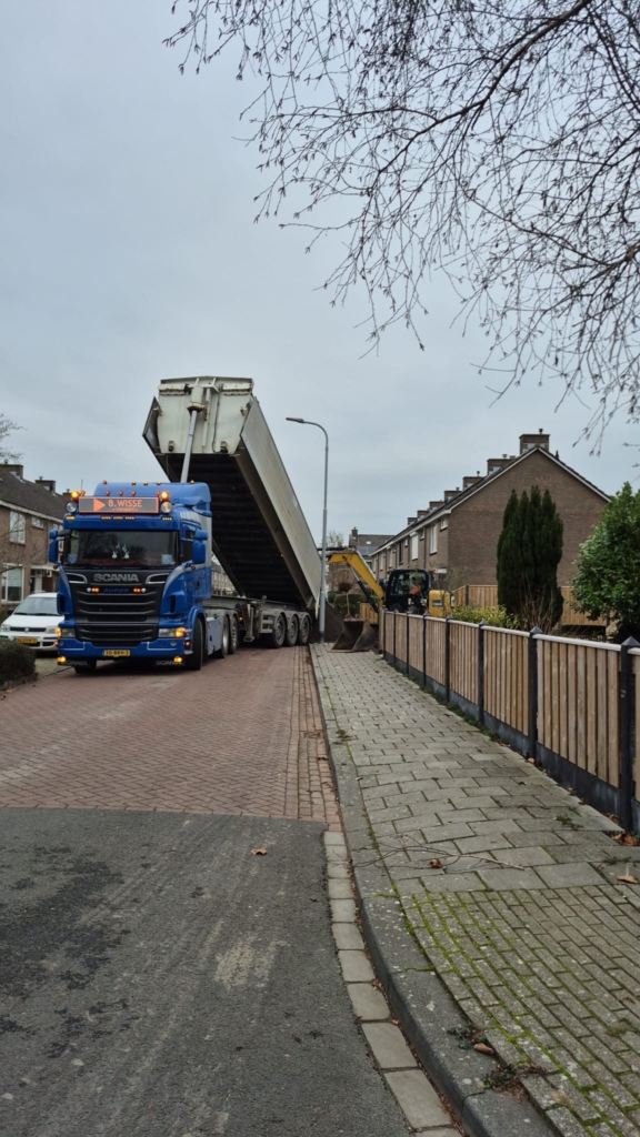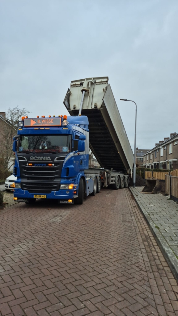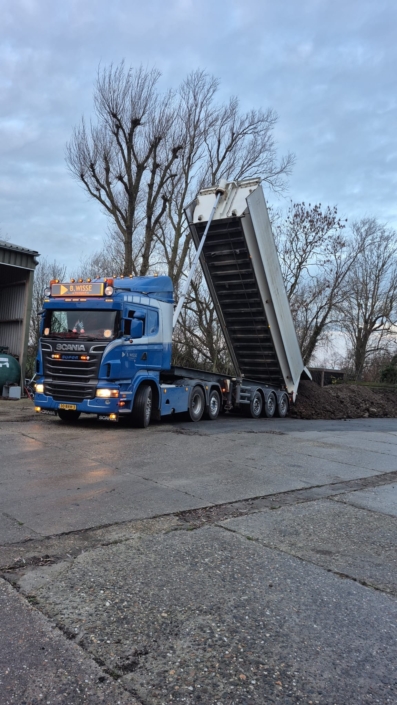 Met onze kieptrailer kunnen we verschillende losgestorte materialen vervoeren, zoals zand, grond, grind en puin. Onze kieptrailer is voorzien van afsluitbare kleppen, zodat wij de lading zorgvuldig kunnen afdekken.